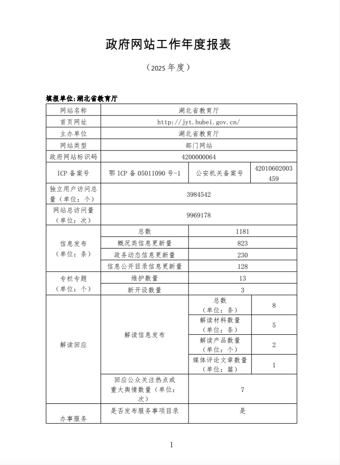 湖北省教育厅2025年政府网站工作年度报表